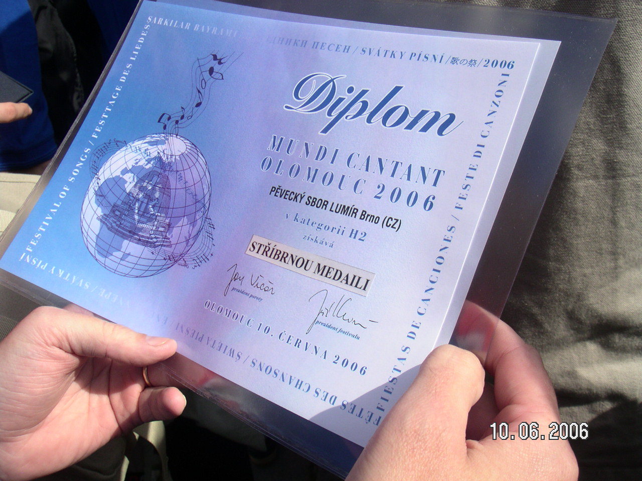 10. června 2006 jsme se účastnili XXXIV. Mezinárodního festivalu pěveckých sborů „Svátky písní Olomouc 2006“.