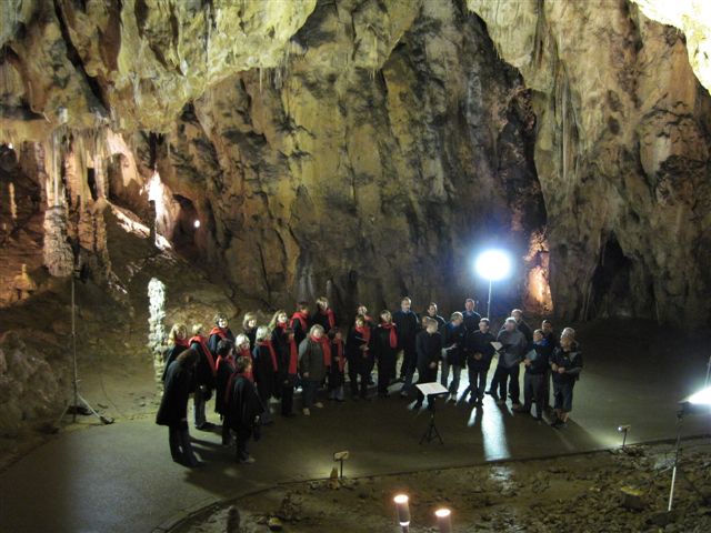 Náš sbor pořádal již jako tradičně v jarní části sezóny koncert ve Sloupsko-šošůvských jeskyních. Tentokrát zpíval v neděli 13.6.2010 v 16.00 rovněž již tradičně v nádherném prostředí Eliščiny jeskyně ve Sloupu. Byla to ideální příležitost vyrazit na nedělní výlet, poslechnout si krásnou muziku a podívat se do krásných jeskyní. V ceně vstupenky byla kromě poslechu našeho vystoupení i prohlídka malého okruhu jeskyní.