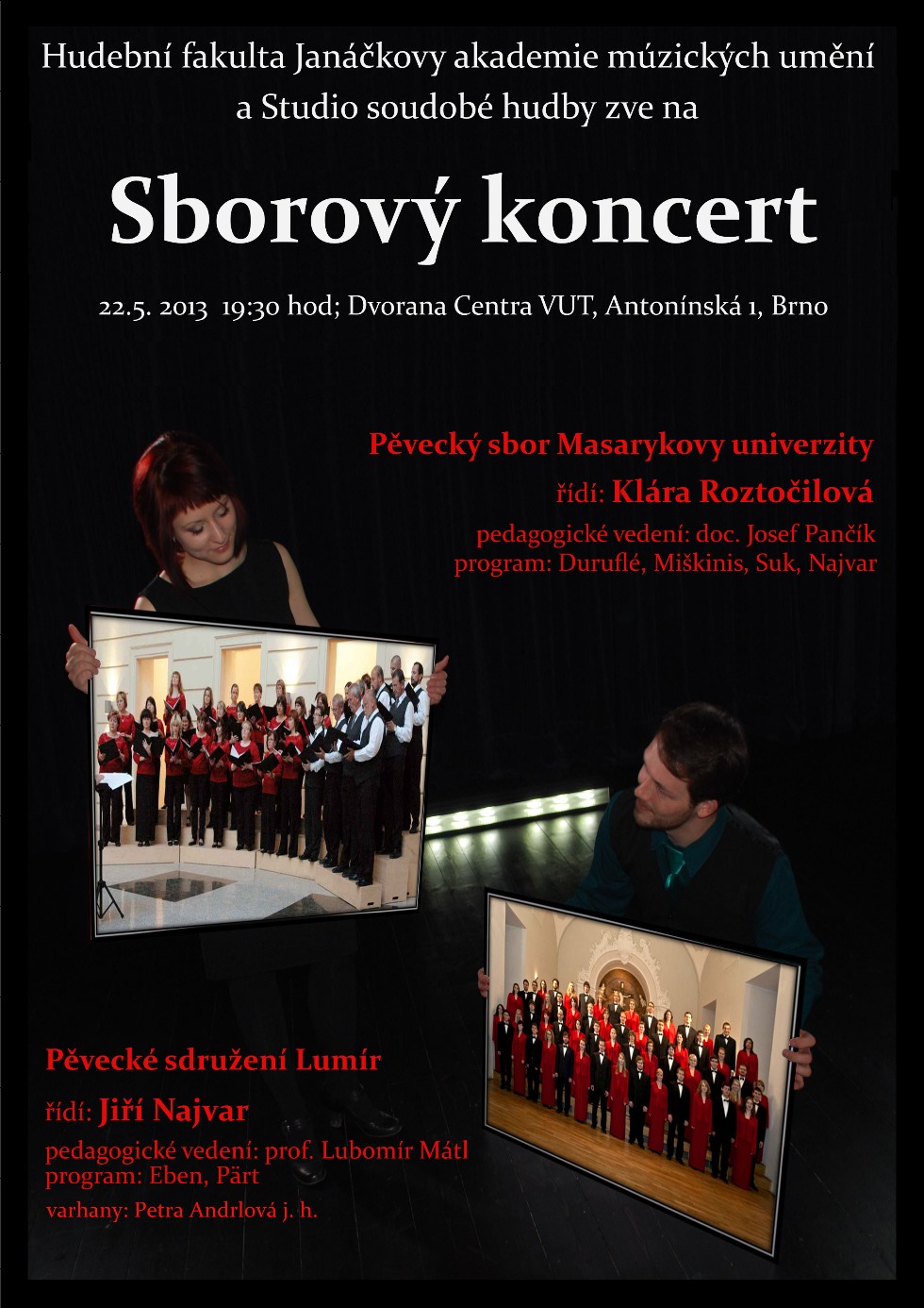 V rámci studia oboru dirigování a kompozice na Hudební fakultě JAMU v Brně se dne 22. května 2013 v 19:30 hodin uskutečnil ročníkový koncert našeho nového dirigenta Jiřího Najvara.