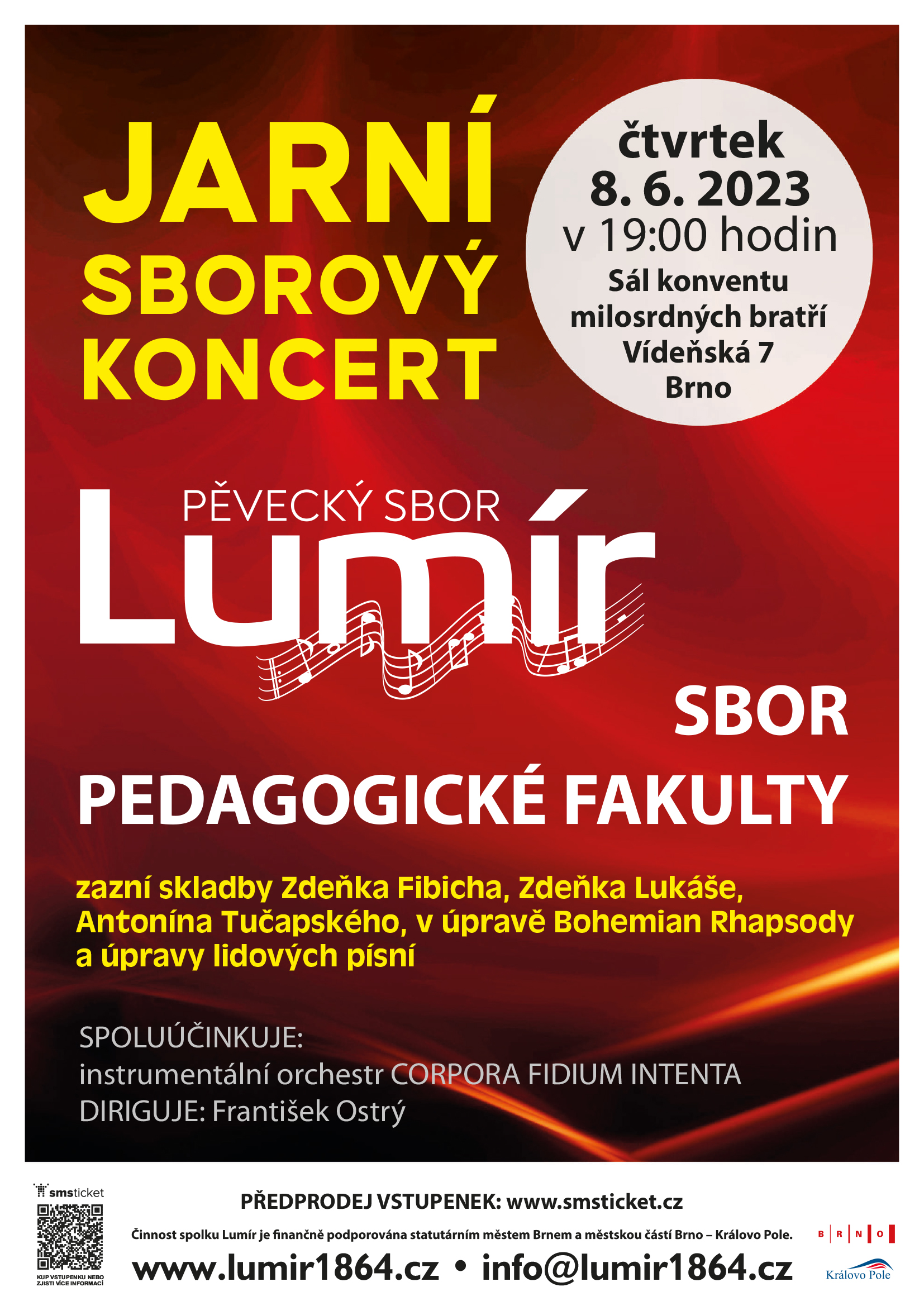 Vstupenky v předprodeji zakoupíte na https://www.smsticket.cz/vstupenky/36217-jarni-koncert-sboru-lumir-2023-konvent-milosrdnych-bratri-brno