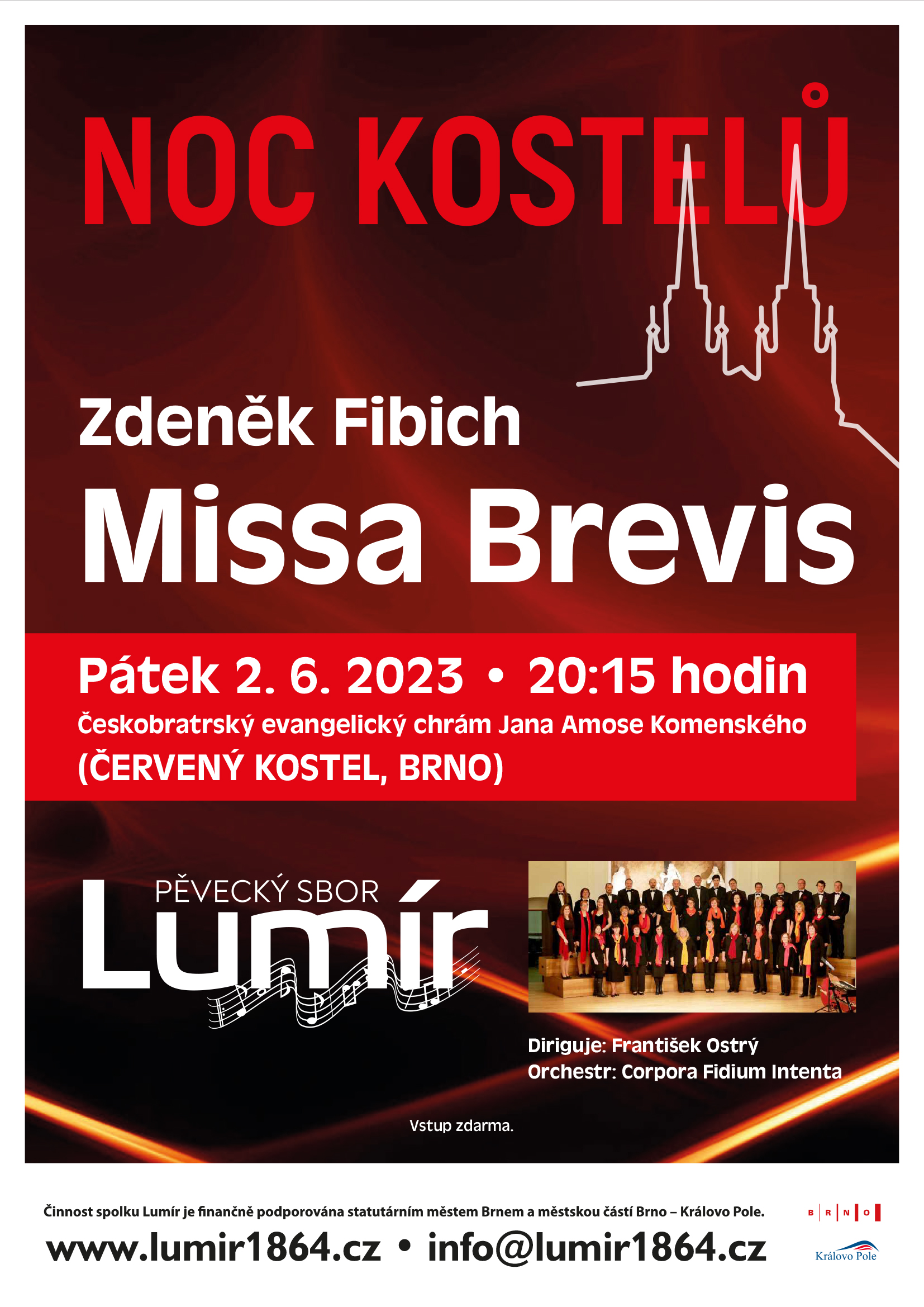První červnový pátek proběhne v celé republice Noc kostelů. Lumír vystoupí v Červeném kostele v centru Brna od 20:15 h. s Fibichovou mší Missa Brevis.