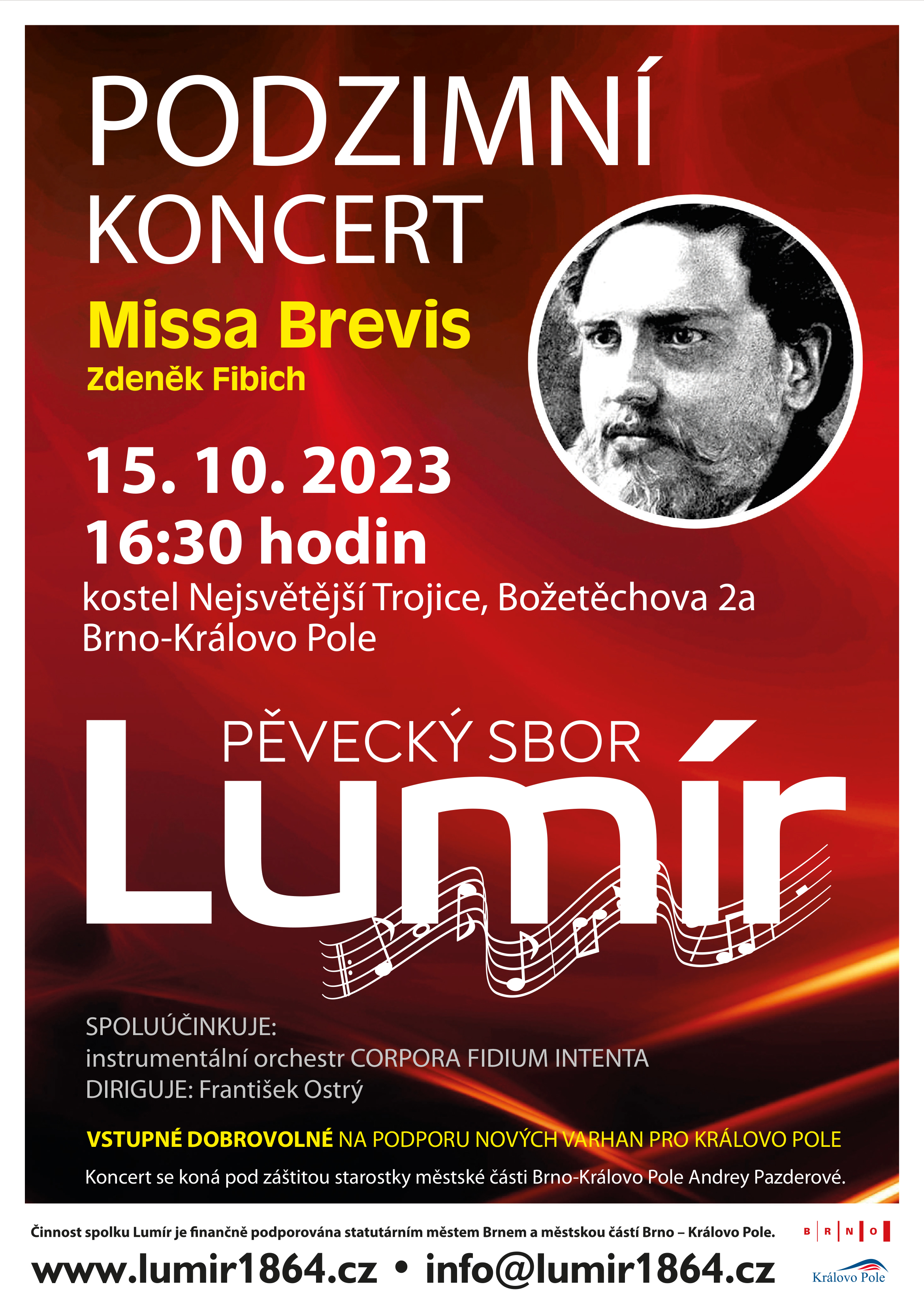 Posledním podzimním vystoupením bude benefiční koncert na podporu nových varhan pro Královo Pole. Kostel Nejsvětější Trojice je naopak známým místem pro Lumír i místní posluchače. Výtěžek z dobrovolného vstupného bude jako obvykle věnován spolku Varhany pro Královo Pole. Koncert se koná pod záštitou starostky Brna-Králova Pole Andrey Pazderové.