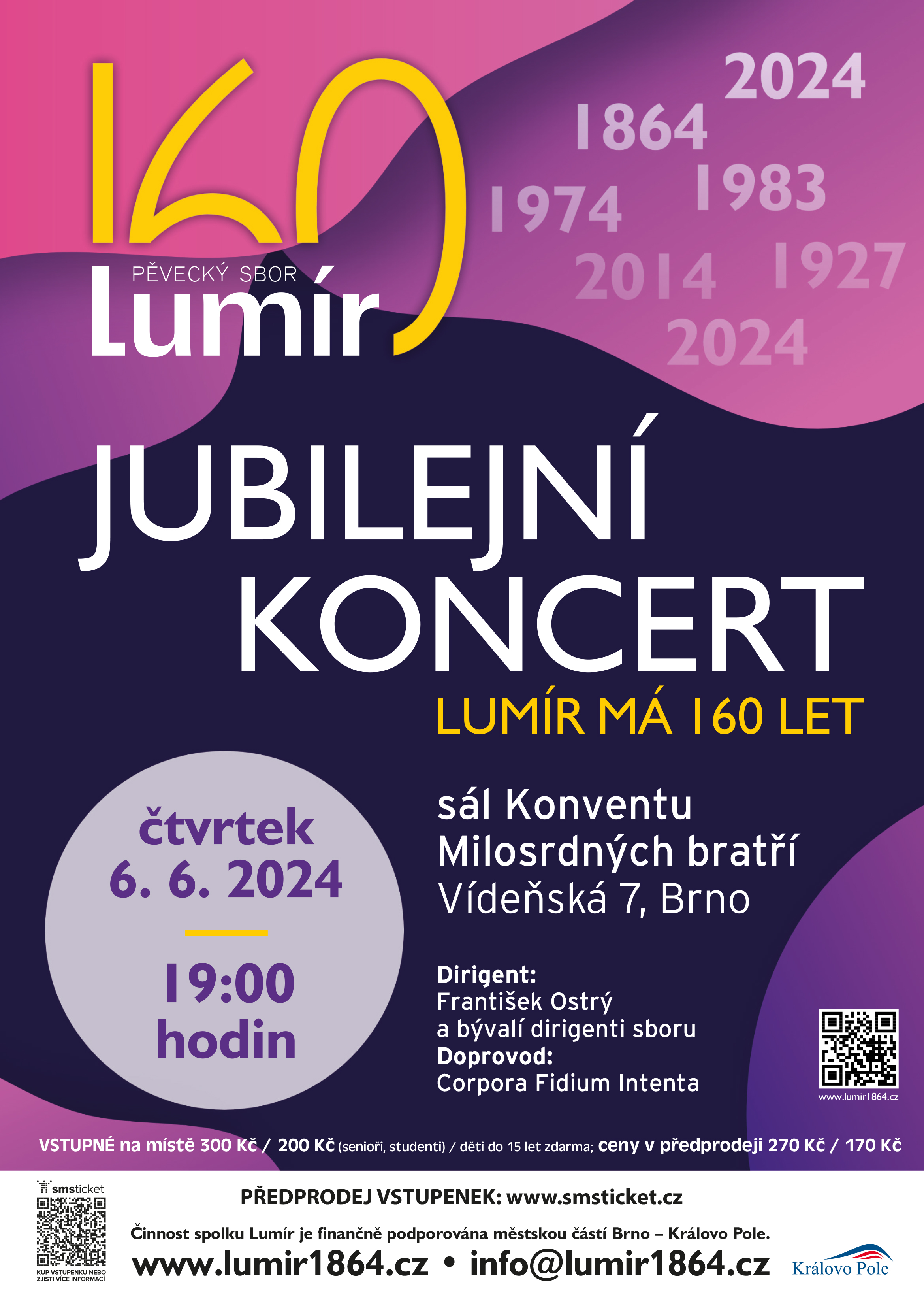 Zvýhodněné vstupenky zakoupíte na https://www.smsticket.cz/vstupenky/45156-jubilejni-koncert-ke-160-vyroci-konvent-milosrdnych-bratri-brno