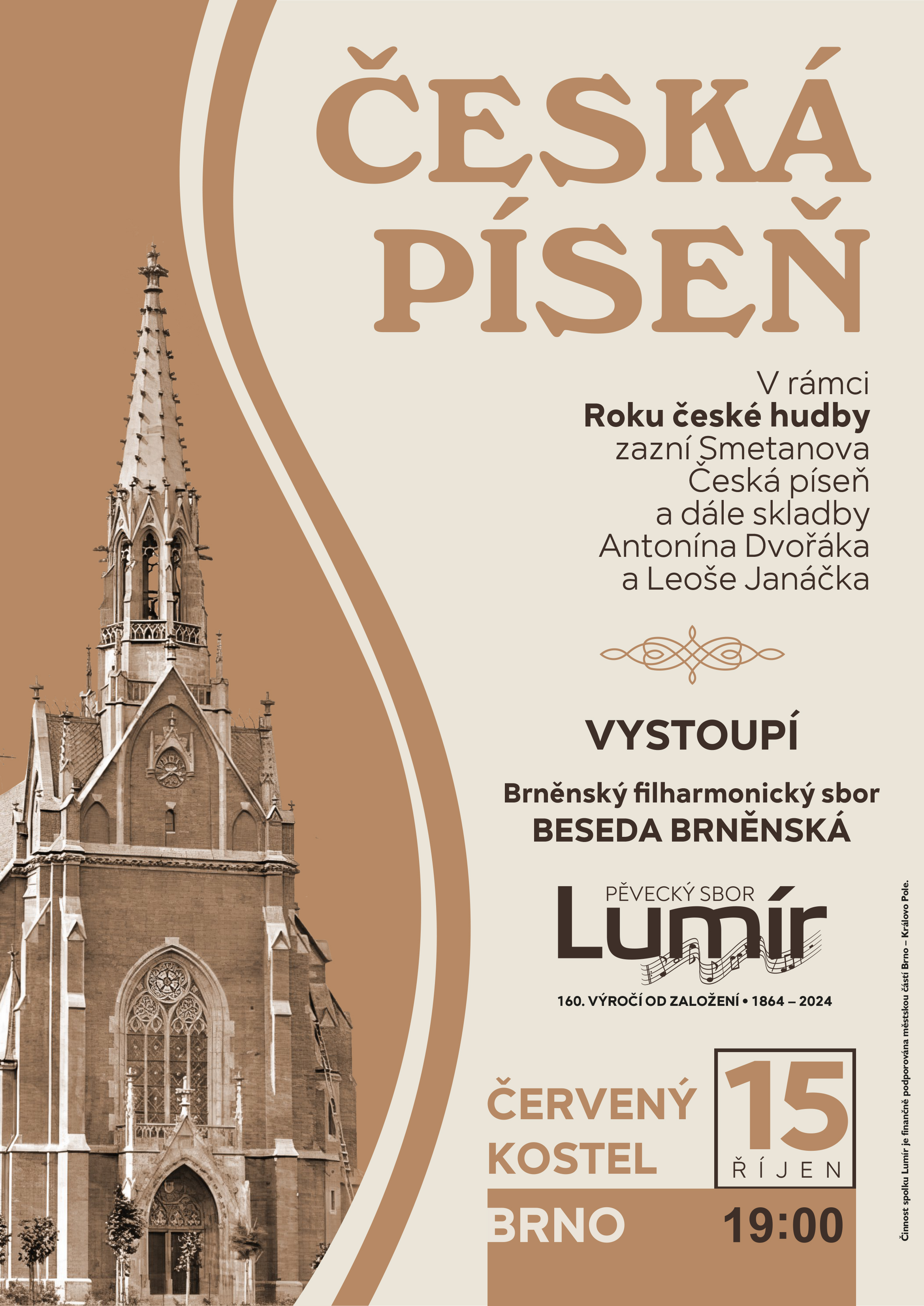Léto sice končí, ale začíná podzim a tím další kapitola v životě našeho pěveckého sboru, který letos slaví 160 let fungování. Na podzim nás čeká několik akcí, na které bychom Vás chtěli pozvat. Hned 14. září započneme podzimní sezónu na tradičních královopolských Erbovních slavnostech, kde pravidelně vystupujeme v prostorách kartuziánského kláštera v Králově Poli. 15. října pak pokračujeme v oslavách našeho výročí zpěvem České písně od Bedřicha Smetany a skladeb dalších českých hudebních velikánů v Červeném kostele na Komenského náměstí. Akce bude dvojkoncertem se spřáteleným sborem Beseda Brněnská. Kromě akcí v Brně máme také 18. října naplánovaný benefiční koncert v Novém Městě na Moravě, jehož výtěžek poslouží na podporu nově otevřeného hospice Pomněnka právě v Novém Městě.