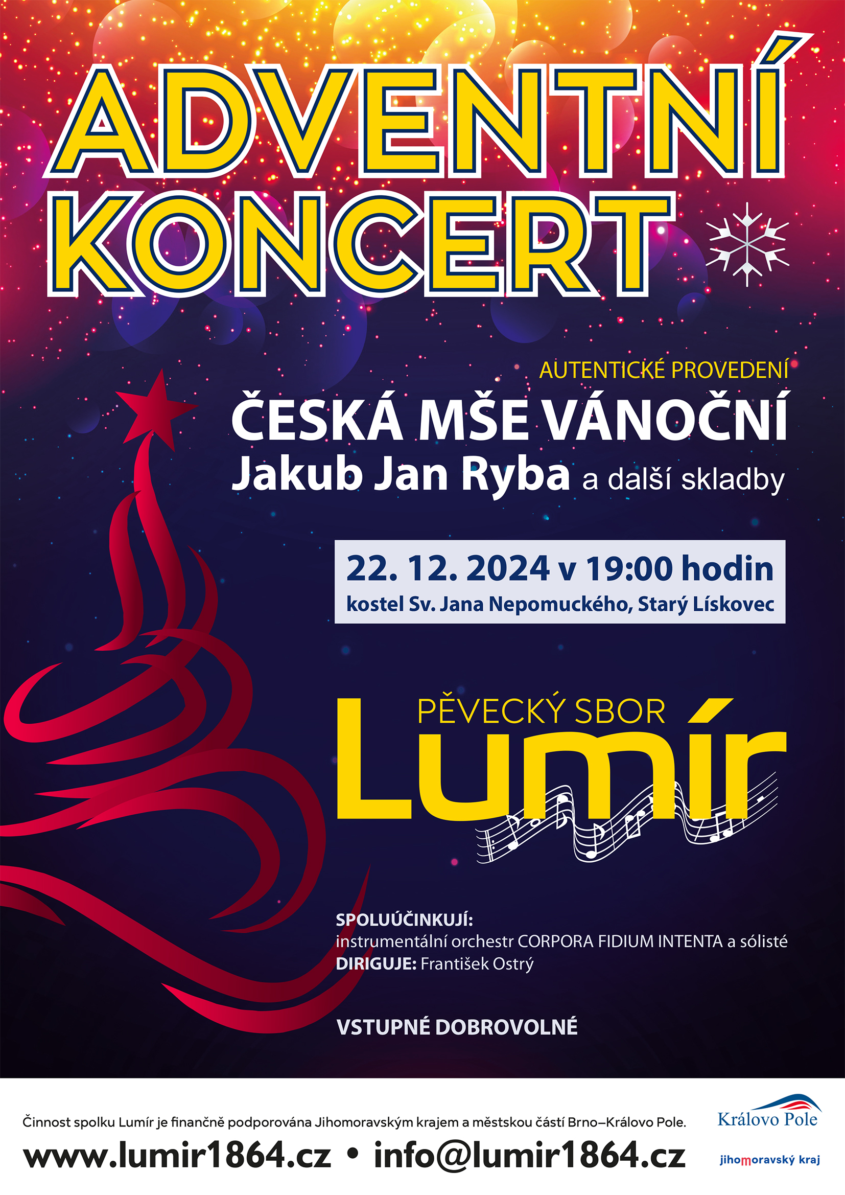 jak už vánoční stromky a adventní kalendáře v obchodech naznačují, za chvíli je tu předvánoční čas. Ani my ve sboru neleníme a pilně se připravujeme na nadcházející adventní koncerty. Letos se sbor Lumír rozhodl pro Českou mši vánoční od Jakuba Jana Ryby v jejím autentickém provedení, které jinde neuslyšíte!